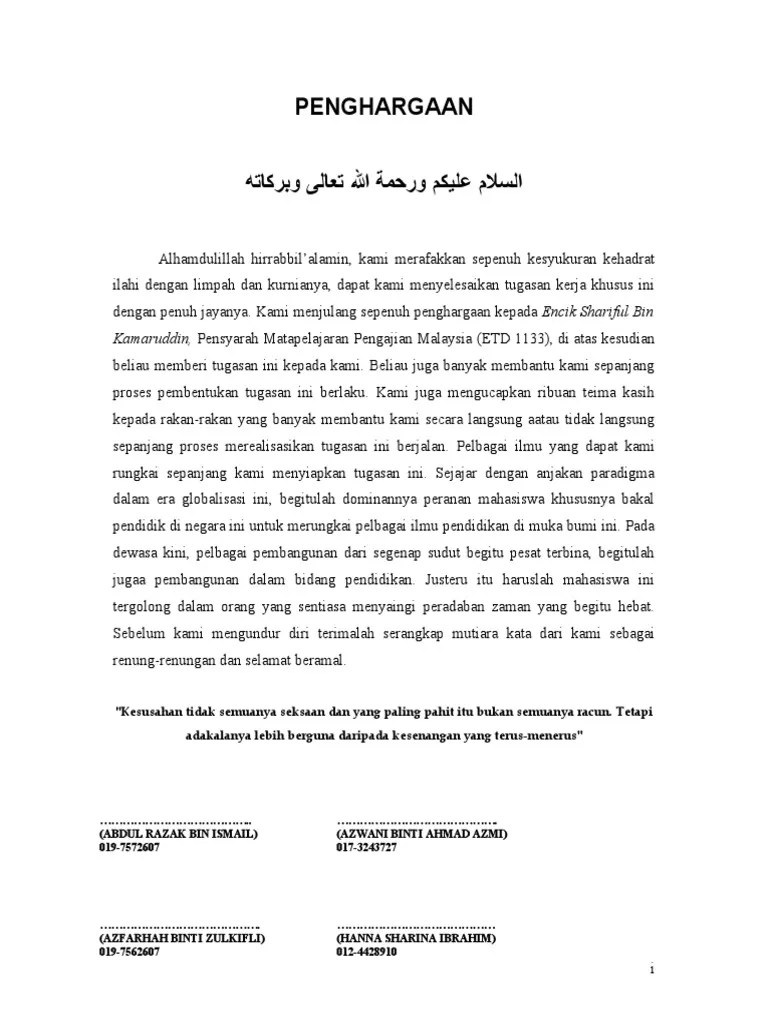 Contoh Ayat Pendahuluan Assignment : CONTOH PENGHARGAAN UNTUK KERJA KURSUS